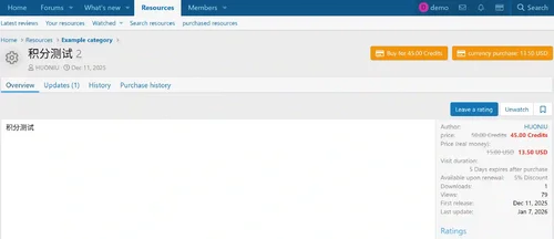 HuoNiu Credits System - Points System is a powerful virtual currency plugin for XenForo 2.x that provides a complete points economy system for your forum. It supports features such as multi-currency management, user-to-user transfers, file renewals, red envelopes, bounty questions, paid content viewing, resource paid downloads, and online recharges.